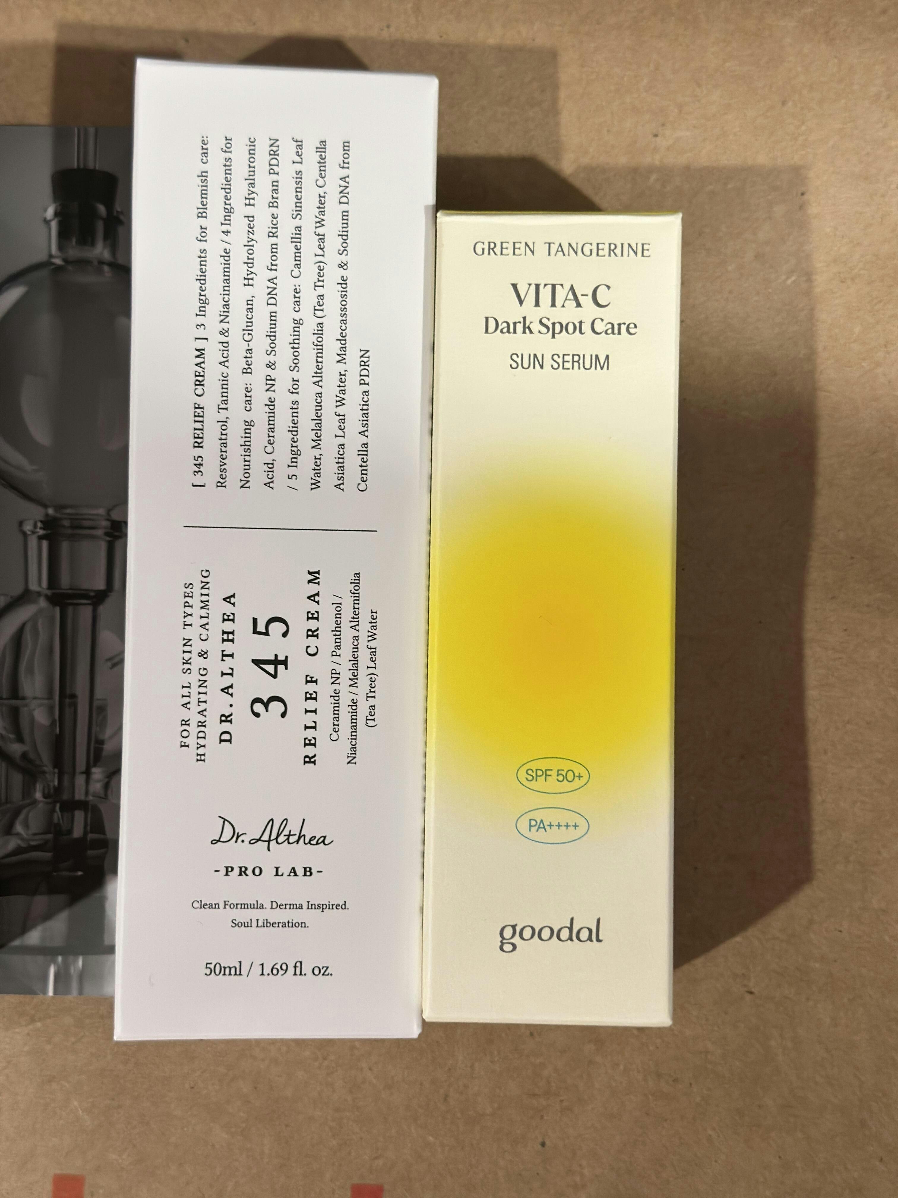 - Dark spot care sun serum and daily sun serum